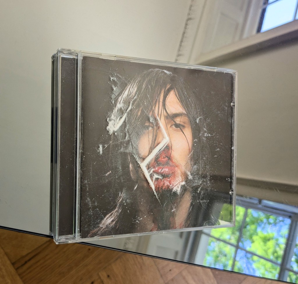 Tate. 2025. CD case, icing sugar.